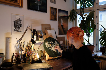 Kunstner Matilde Magdalena Wahlstrøm arbejder med fuglekongeskiven